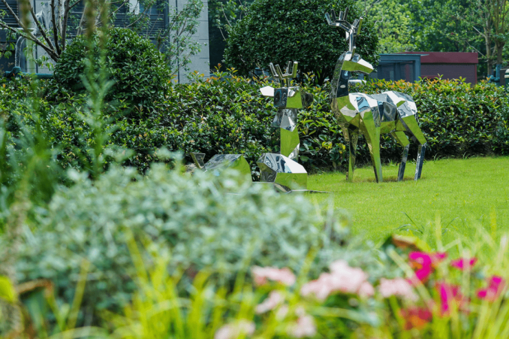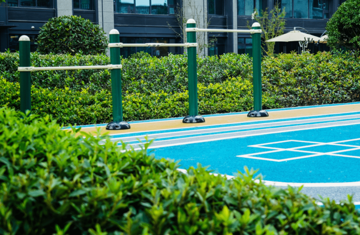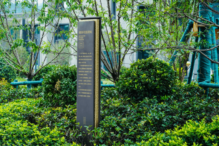 以健身为主题的花园,周边种植了丰富景观树种,营造与自然共生的健身氛围。