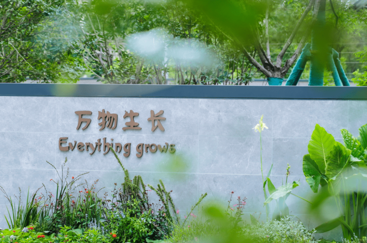进入小区不久,就能看到景墙,景墙前后种植了多重景观植物,为业主营造更具仪式感的生活氛围。