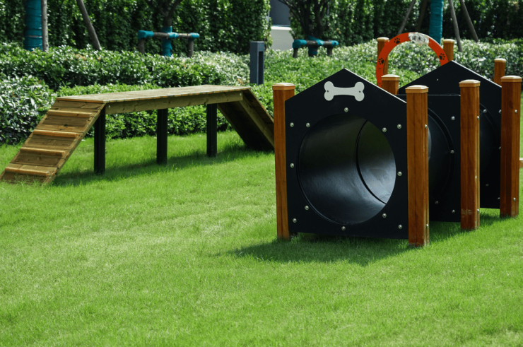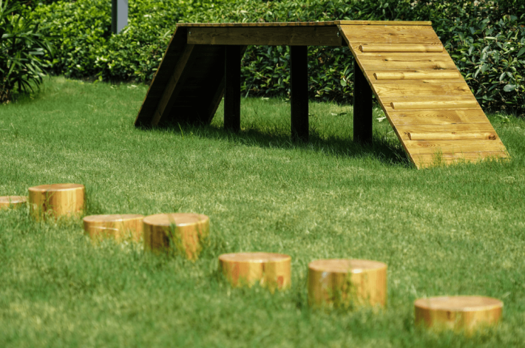 被绿茵环绕的萌宠乐园,木质色+绿茵色,尽显高端盘气质。内部配有宠物娱乐设施、宠物垃圾回收筒,方便主人带狗子撒欢。