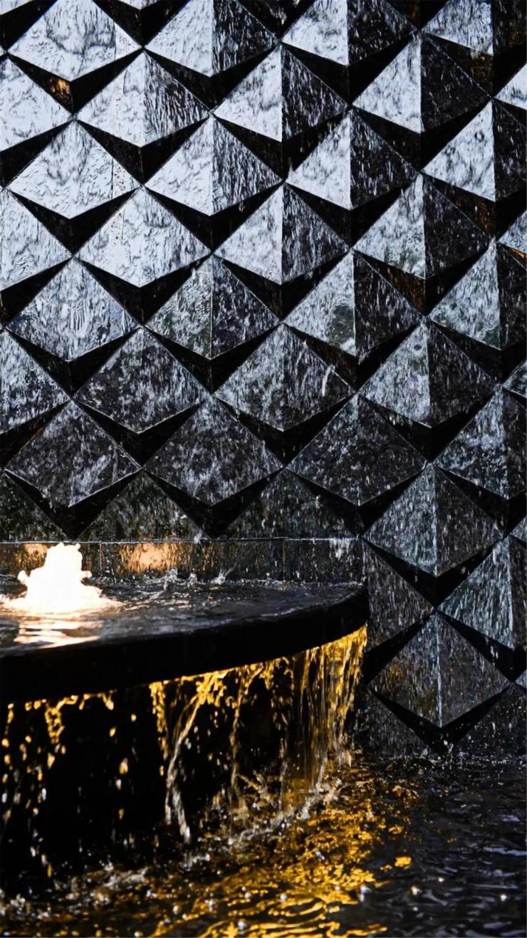 比如说,南区标志性约9米高差的叠水瀑布,全城罕见!水流自高处轻盈跃下,层层叠叠,宛如银丝织就的绸缎,在阳光下熠熠生辉,蔚为壮观。