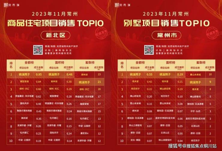 其中,桃溪院子的叠墅成交9套,高居11月常州市别墅项目销售金额榜、面积榜双榜TOP1。