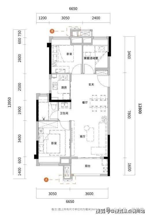 四开间朝南,所有卧室都朝南,每个人平等享受阳光,而且南向面宽达到约12.3米,比得上140㎡的改善户型了。