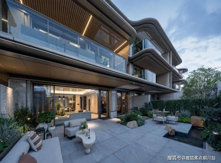 其中,建面约385㎡沿河头排,南向直面公园与城市天际线,堪称主城区视野最佳的合院作品。