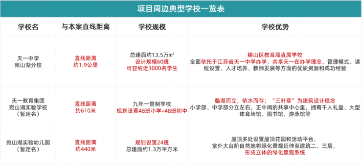 拥揽天一中学宛山湖分校、天一教育集团宛山湖实验学校等品质学府,宛山湖幼儿园(在建)与项目仅一路之隔,尽可享受“目送式教育”,免去家长接送孩子的奔波和担忧,治愈家长和孩子的“上学焦虑症”。