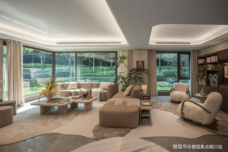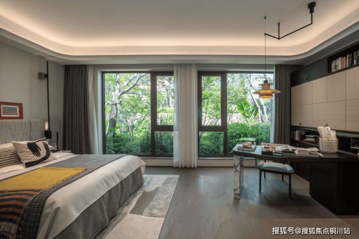 园林叙事中的无界共生理念在此延续。L型转角落地窗将建筑边界悄然消隐,绿意与天光持续向室内渗透。内外无界,心境也随之开阔。