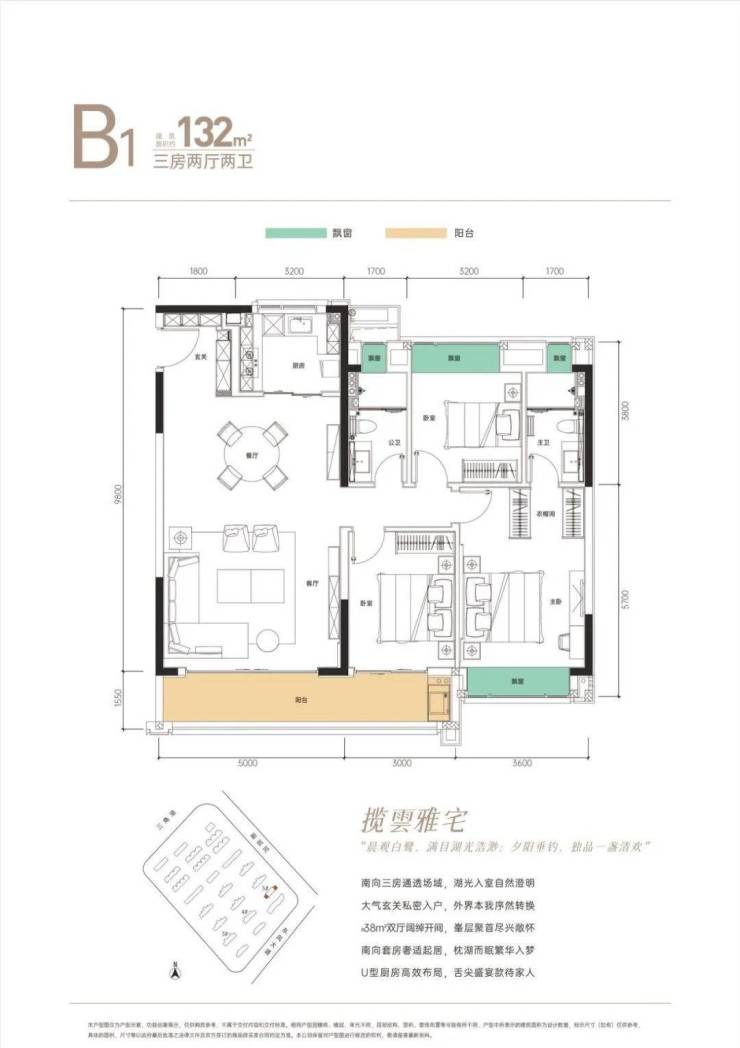 以往约200㎡户型才配备的5米以上大面宽客厅,在武汉城建·雲栖湖岸132㎡户型就实现了这个尺度,给予业主更奢阔的生活空间。
