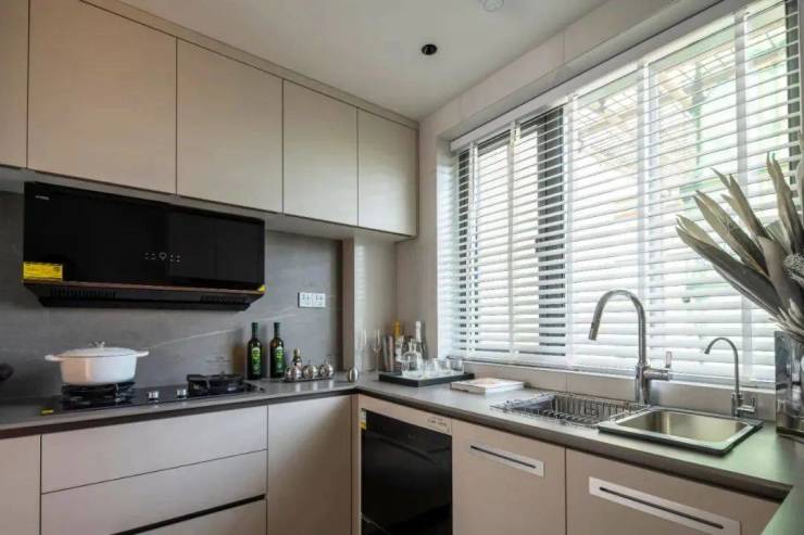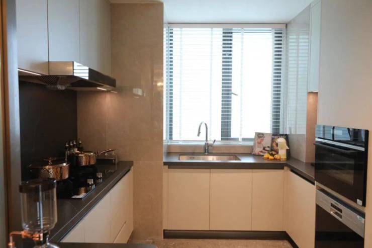 一层“U”型厨房,操作动线合理便捷,自然形成高效的黄金三角位,降低了烹饪的劳动强度;洗菜台面向窗户,让自然光线照亮厨房,洗菜切菜亦有阳光与清风相伴,慢享烹饪的美妙时刻。
