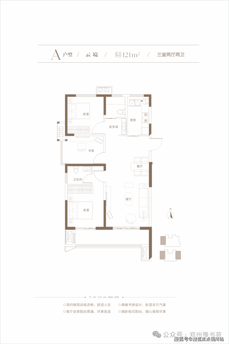 A户型 丨 建面约 121m2 丨 三室两厅两卫