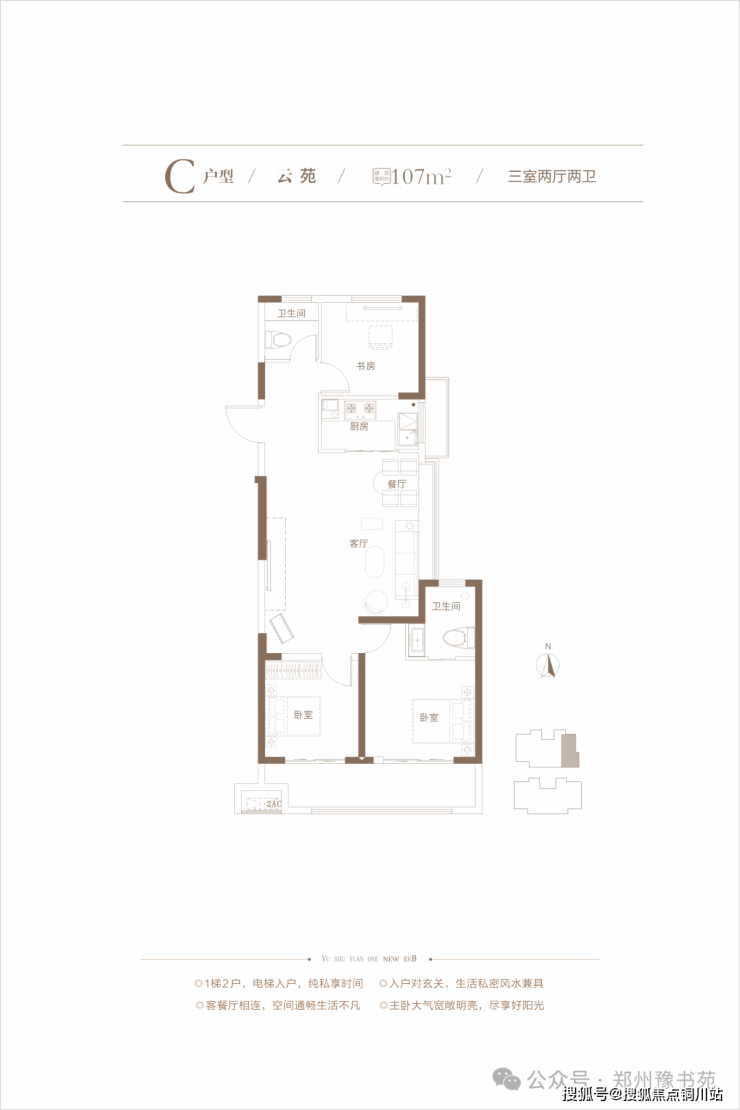 C户型 丨 建面约 107m2 丨 三室两厅两卫