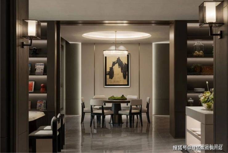 呼应小区南侧下沉庭院会所高端休闲主题,青年潮玩、解忧茶馆、艺术展区、私宴会客厅等复合场景联动形成“社交枢纽”。其中,“雅聚·飨食”特色会客模块是佛堂印象专为高端家庭打造的全场景社交解决方案: