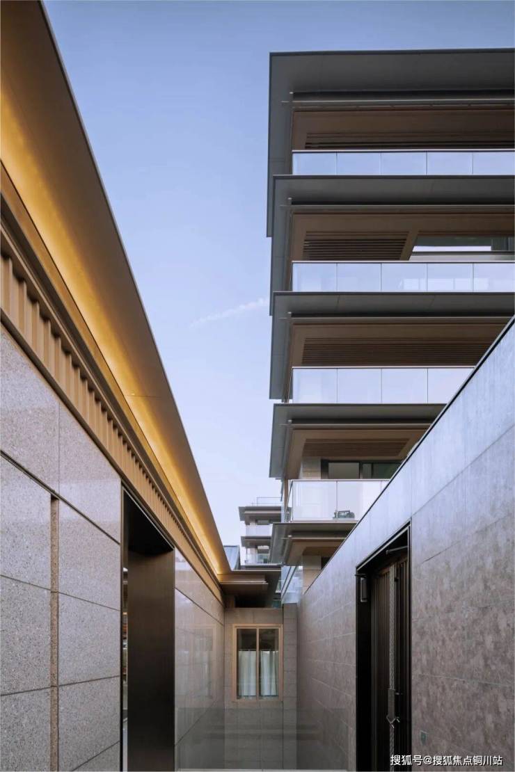 从空间构造来看,项目打破传统设计中的建筑方正格局,特意留出约2000㎡核心中庭打造公共体验院落,更在其下挖掘约1300㎡的地下复合型会所功能空间,以“三进四院”的礼序递进及多层复合的空间营造,带来诗意且放松的归家体验。