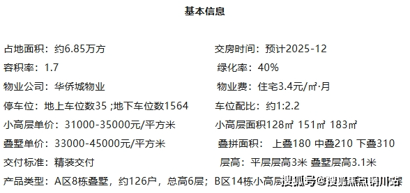 项目分为A、B两个地块开发,其中A区为8栋叠墅(高4-6层),B区为14栋小高层(高11-17层),户型产品为建面约128-310㎡。