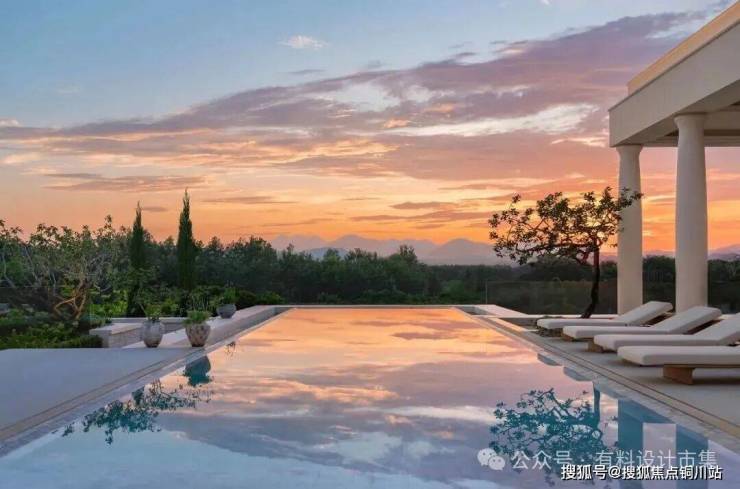 场地周围连绵的低矮山脉,覆盖着原生的灌木森林,原生的芦苇丛林,落日余晖,以及远眺西望的法式桃花源的浪漫,共同交织出融入自然的南法风情。“南法”并非一个城市的概念或是风格的定义,而是松弛、惬意和慵懒的另一种写法。设计不再是建筑的附属语言,而是一种生活的共鸣方式,一种恰如其分的生活状态,它继承传统法式复古和浪漫的同时又带着田园生活主义,追求自在生活的舒适和惬意。