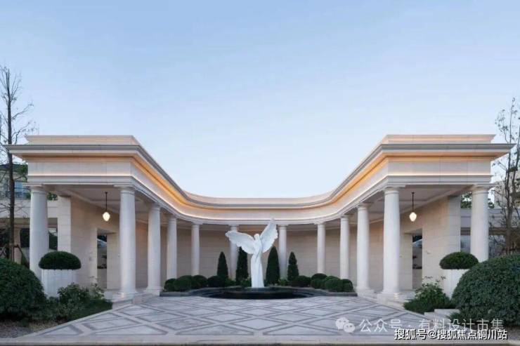在柱式设计上,保留多立克古典柱式的比例尺度精髓,摒弃繁复凹槽与过度装饰的柱头,以更洗练、更富几何感的轮廓呈现,形成序列化的优雅节奏,褪去传统柱式的沉重权力象征,更显轻盈灵动。