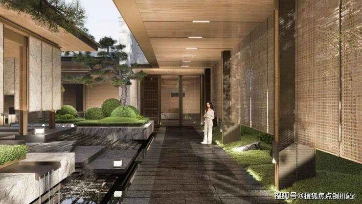 ●山水中庭:叠石曲水,围合气韵。起伏绿岛与特选乌桕掩映,开启心灵栖居之旅。