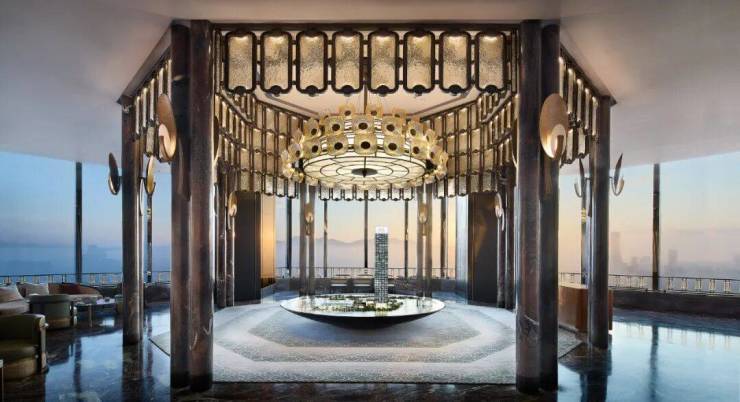 从上至下,这座垂直立体城市综合体分成4种业态。云端处是奢华酒店的顶流——丽思卡尔顿,位于67-79层,预计2028年正式开业。