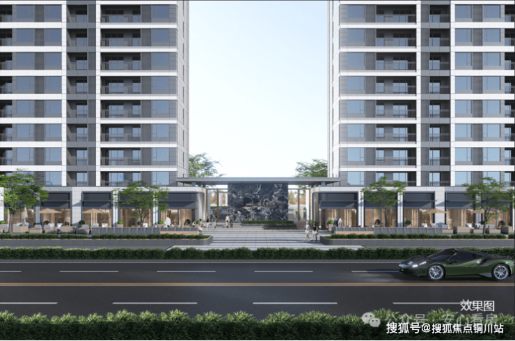 项目入口生活商街+昭示入口,南北东三面沿街花园商街,精致化的酒店式入口大门,营造精致的归家体验,给业主高雅的归家感受。