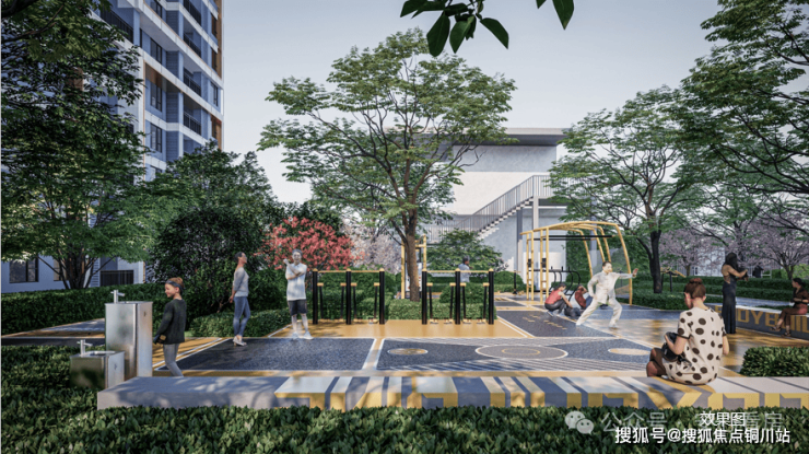 项目打造了全龄段活动趣乐空间、亲子陪伴空间、长者健身空间,以及健康运动环,600M超长跑道串联起各处超1600㎡的乐活运动场地。