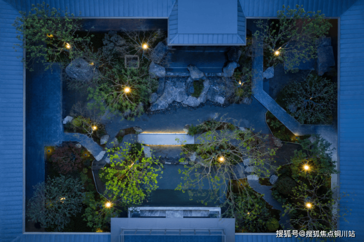 步入下沉庭院,迎面而来的是落差超5米流水飞幕、自太行山脉搬运而来的原石和凝练汉口在地人文的玉带石桥。在庭院秘境的掩映里,高楼林立的汉口内环,首次望见了山水逸境。