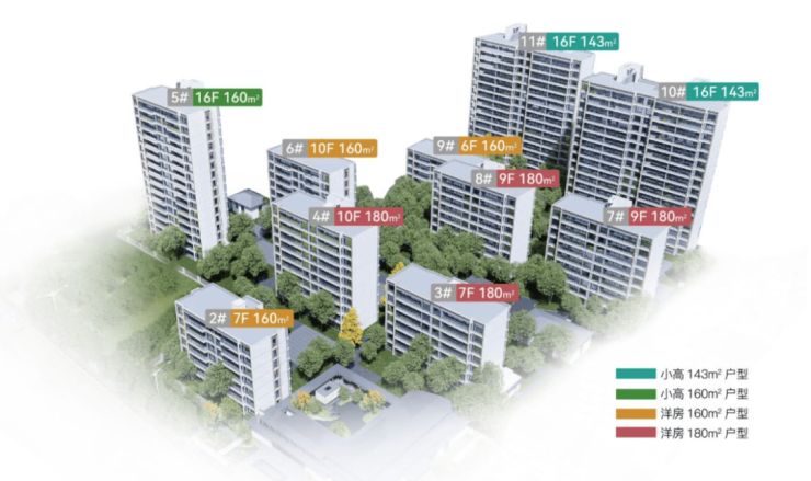 小高层建面约143㎡,四室两厅两卫,同样有大气度。