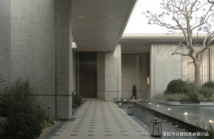 二进院落为伴水而归的江南庭院,一个将江南雅韵与现代审美巧妙融合的后场水苑,这里不仅是视觉的享受,更是心灵的栖息地。设计结合连廊空间引导人们参观视线,连廊之下巧妙地设计了高级感特色灯具与墙面标识,惊喜与细节无处不在。沿着连廊漫步,步入水苑,层级高差打造花园水瀑、水景四面环绕,结合常绿铁冬青立于水中,营造出水涧优雅之境。