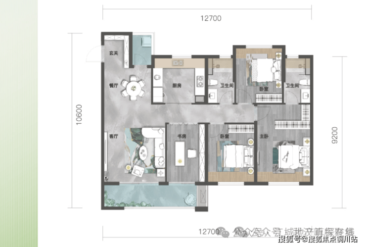 约12.7米南向四开间,大面宽采光,舒展格调生活