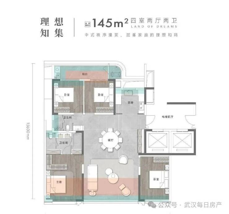 其中,建面约130平3+1房是武汉理想之地起步级户型:
