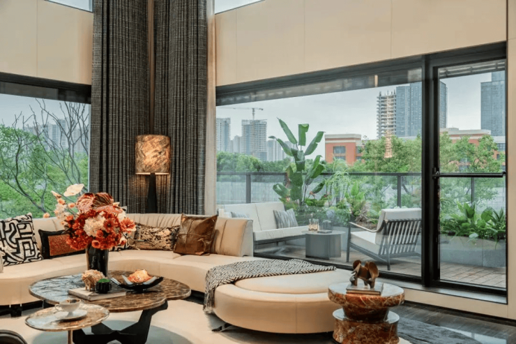 这样的设置在其他项目前所未见,也是中海在南京首次出现的产品类型。其约6.6米墅厅层高,形成“立体化”观景视窗,以向上一倍的高度营造视觉与感观的延伸;加上墅厅最大达到约12米的面宽,消融室内外界限感,舒适度极佳。