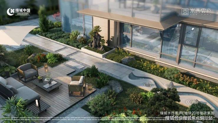 经由归家大堂、再沿景观中轴进入社区,两侧银杏树阵庄重威严,序列分明。前一刻,还在婆娑树影下穿行,下一秒,已是廊亭蜿蜒通幽。草坪、灌木、乔木等苍翠叠嶂,山石水景丰富灵动,乔木灌木葱郁,共同构成一幅妙趣横生的自然画卷。