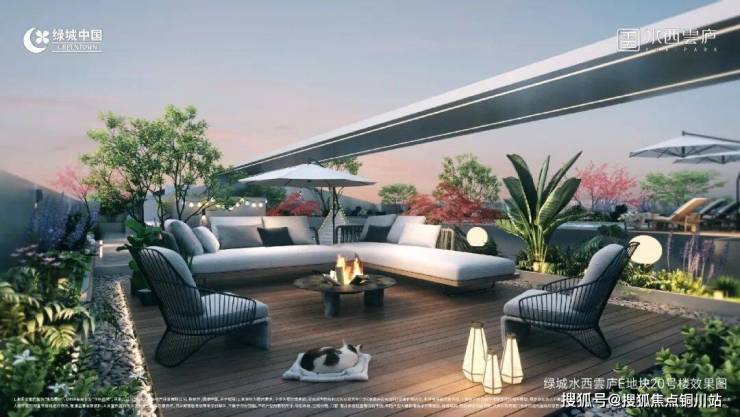 E地块一层奢享入户庭院,独辟一方浪漫院落,将自然浓缩其间;二层打造270度转角露台,更是在天津建筑新规范下的一次大尺度探索创新;顶层则开辟一处揽月摘星的星穹天台,其中西组团顶层坡屋面客厅最低处层高约3.1米,最高处层高约5.8米,回首处俯瞰城市璀璨与水西烟波,共揽城市雲巅荣耀。