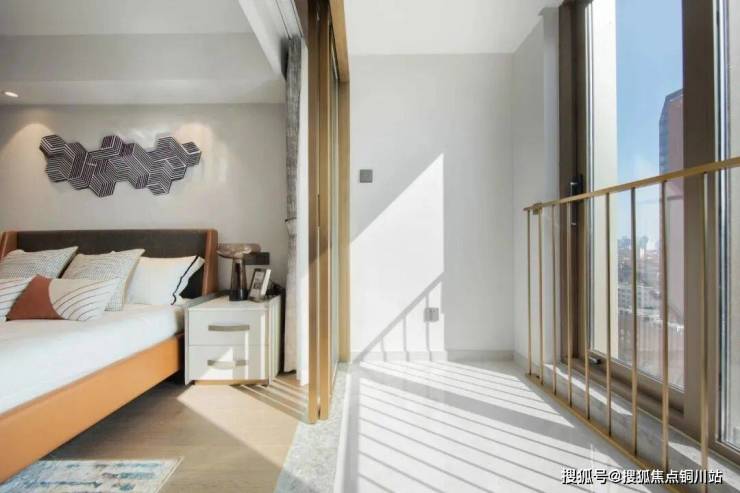 空中跃墅样板房实景图,一层南向卧室与阳台