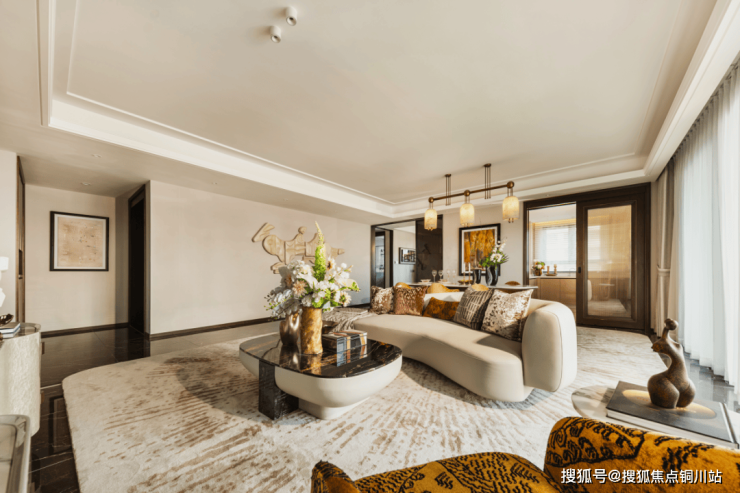约46㎡餐客厅一体化的无边界社交客厅,不再以传统沙发、电视为中心,而是将餐厅、客厅、厨房、阳台等功能空间,彼此无界相连交织出一个集合触觉、听觉和嗅觉的公共艺术空间。