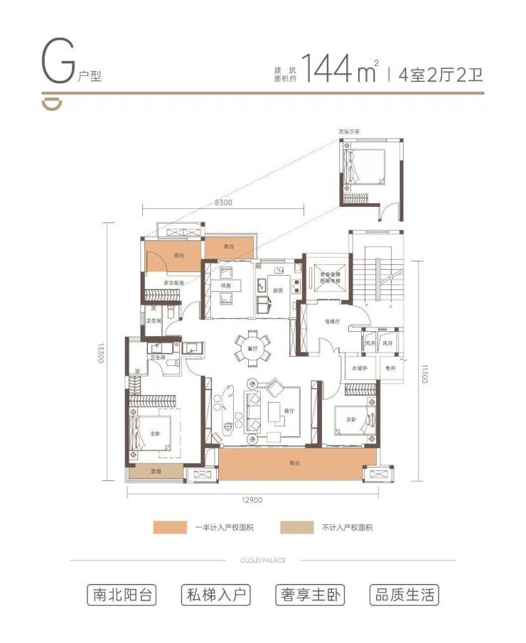 首开小高层144㎡,四室两厅两卫设计,两梯两户配置,自带私家电梯厅,大横厅采光面超大,南北三阳台赠送面积夸张,即保证了舒适度,又非常契合当下年轻人爱社交、追求可变性的生活方式。