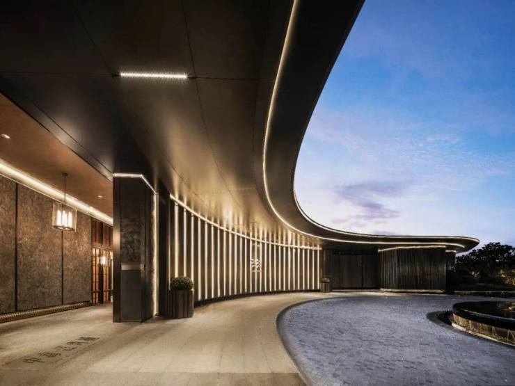 值得一提的是,地库入口与主入户门头的一体化设计,使得整体空间融会不违和,全长约100m宽幅尺寸,是宁波史无前例的恢弘门头。