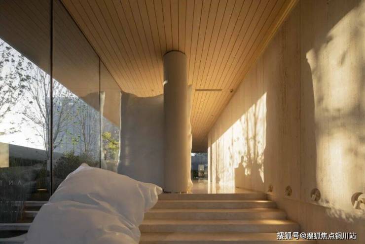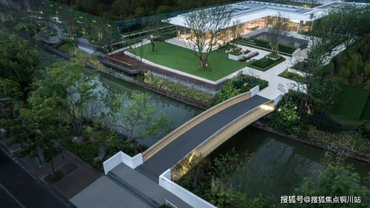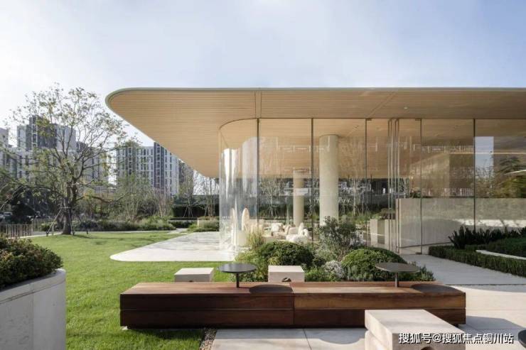 建筑外立面设计上,沿袭现代轻侘寂风格,设有屋檐设计,精美斜切角屋檐,此外还将木纹铝板材质运用到外立面,搭配银白灰色铝板、大面积通透玻璃窗,颜值很高。