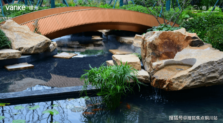 据悉,檐语间的水景不仅多,而且营造的氛围,也特别震撼,比如这一次实景展示的中央景观轴内设置了一座“归心桥”,让业主们在家门口也能拥有:“小桥流水人家、喂鱼观荷赏花”的生活氛围,走进檐语间,仿佛走进了一座江南园林。