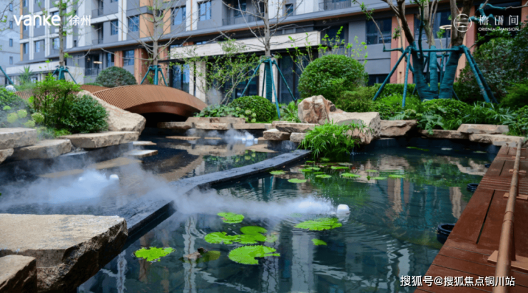 万科檐语间,突破技术难关:在小区水系的池底打了松木桩,采用抗渗混凝土一次性浇筑,就为了防沉降!
