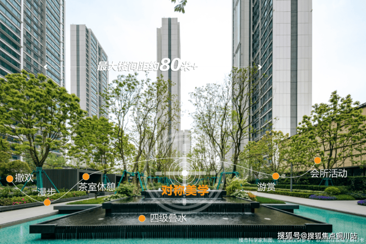 以中央水景为中心,两栋楼之间串联起撒欢、漫步、茶室休憩或是游赏以及会所活动等一系列丰富的活动场景,想释放卡路里还是陪着孩子遛弯亦或是放空,总有你的一方小天地。