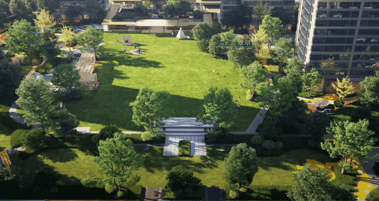 沿街路面建筑依次增加,保证了居住者更好的景观视野与通风采光,同时拥有更大的施展空间打造园林,并塑造出层次感分明的天际轮廓线。