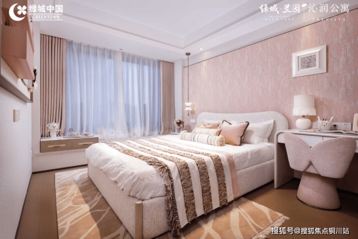 儿童房是小公主的蝴蝶乐园,淡粉色为主色调,墙面的翅膀图案与柔和曲线交织,仿佛色彩在飞舞。这里不只是睡觉的地方,更是孩子自由探索、编织梦想的小天地,纯真想象在这里被好好呵护。
