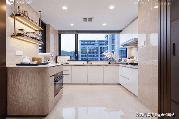 厨房的中岛台是互动的核心,多了操作空间,还预留了蒸烤箱位置,烤甜点时孩子在旁递模具,下厨也成了欢乐时光。