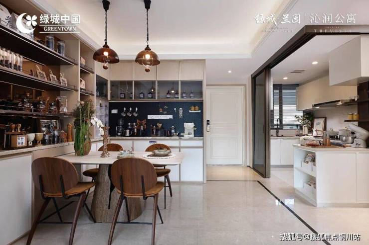 餐厅的仪式感藏在细节里,圆润餐桌配柔光灯,硬装餐边柜融合了冰箱、水吧台和储物拉篮,咖啡机、藏酒都有去处,家人围坐吃饭,笑声就是最好的背景音。