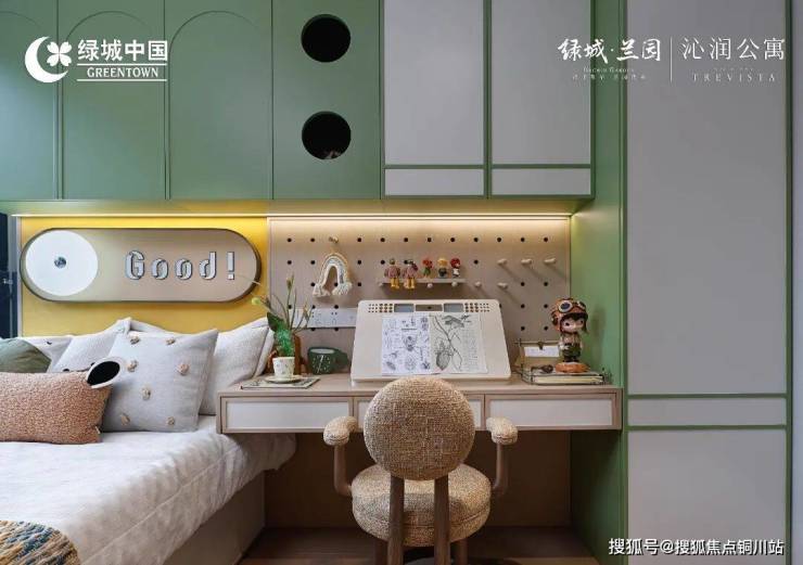 儿童房“麻雀虽小但五脏俱全”,巧妙地整合了睡眠区、学习区和储物区,1.55m³的储存空间不仅满足了孩子天马行空的想象,也确保了衣物、玩具、书籍都有充足的收纳空间,培养他从小收纳整理的好习惯。