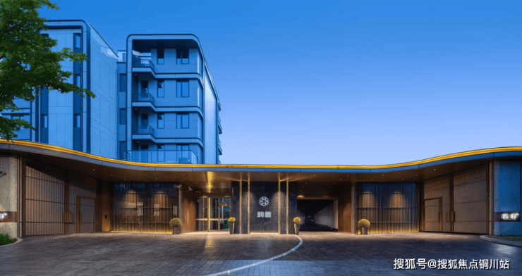 最终,该金属光带系统与商业配套建筑的立面设计形成精准对位——通过材质延续、色彩呼应及线性逻辑的深度关联,实现从入口飘板到围墙界面,再至商业建筑的完整视觉闭环。