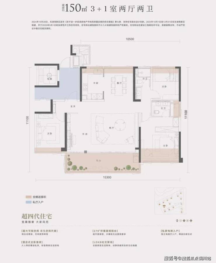 从户型看,该项目也是准四代产品,除了电梯前室、阳台、飘窗等优化面积外,还有较大花池可优化空间,得房率高。