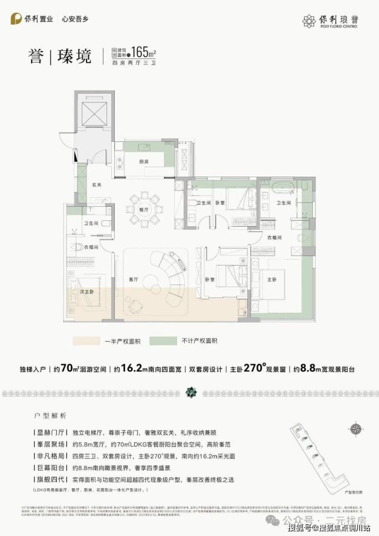 保利琅誉的109㎡户型得房率约92%,138㎡户型约 98%,165㎡户型约99%。