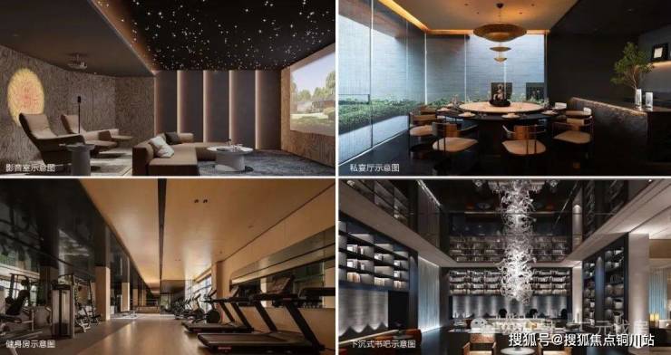 项目还打造了四大主题架空层泛会所,包括下沉式会所,包含私宴厅、影音室、艺术书吧、健身房等空间。
