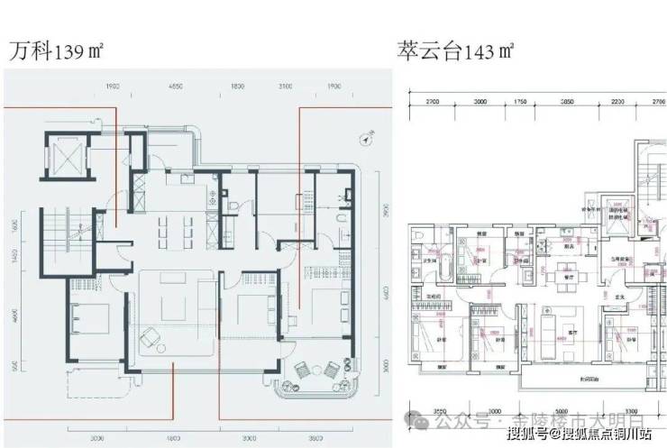 万科的139㎡B户型这个户型我们跟保利萃云台的143㎡做对比