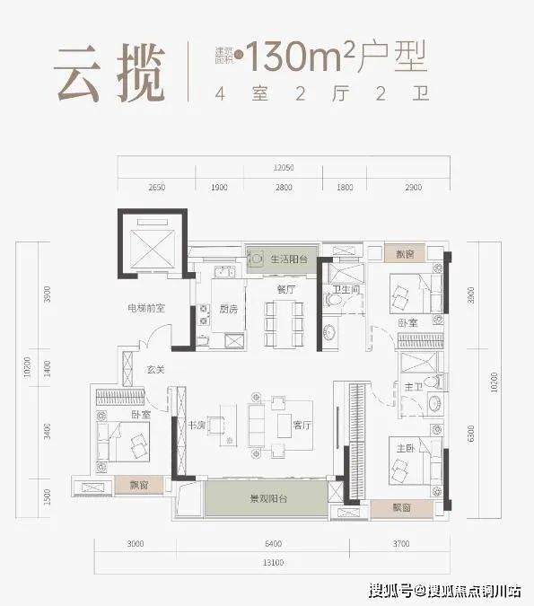 室内动静分区的设计更具人性化。约6.6米的双面宽阳台让视野更加开阔。