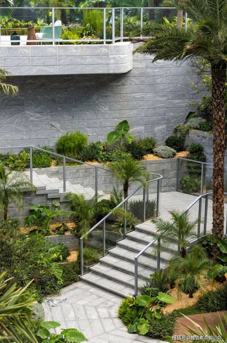 当喧响沉入地平面之下,一座约800㎡的下沉式私屿庭院缓缓浮现。迎龙观月彻底打破传统景观的平面感,以最大竖向落差约2米的起伏地形,结合多层次植被与水景,塑造出丰富的景观序列。